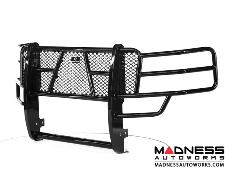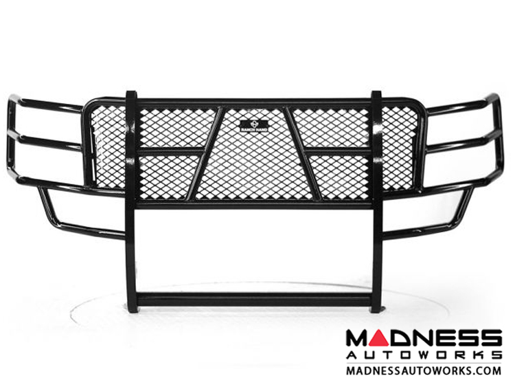 Ranch Hand grille guards give your truck or SUV that customized look while providing you excellent front end protection. Grille guards and brush guards prevent major damage to your truck by absorbing the impact of the collision and taking out whatever is in the way. Ranch Hand grille guards are mounted to the frame of your vehicle for added strength and support. Standard features include a black powder coat finish for superior corrosion resistance, custom punch plate grille insert designed to match your vehicles' billet grille, wrap around loop design, support loops, and frame mounting. Options are Hammertone finish and rubber bumper pads on uprights.
