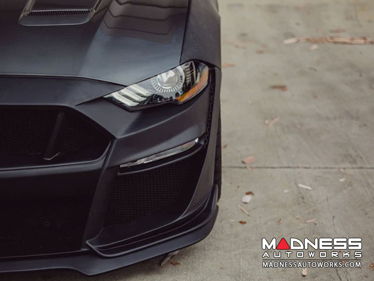 - Aggressive styling is 1.5" wider and 2.5" lower as compared to the OE Mustang bumper