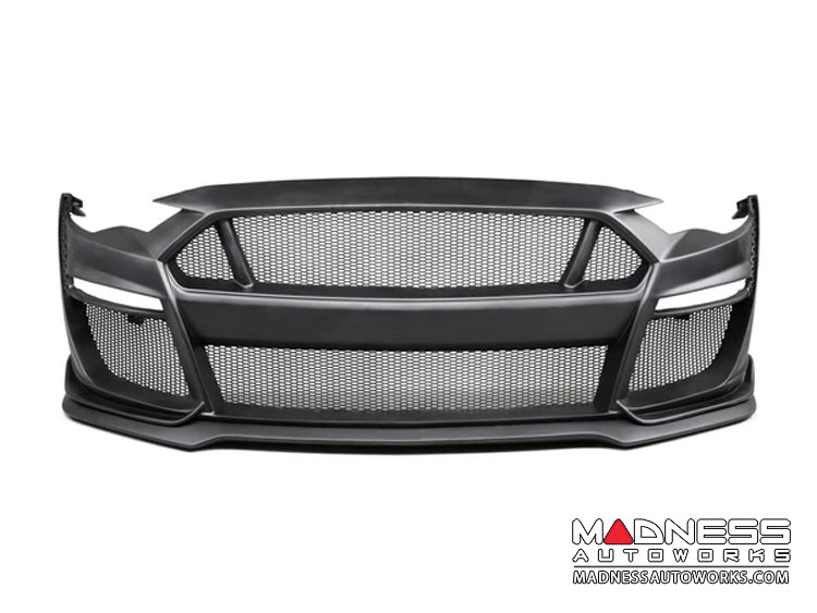 Add this GT500 style front bumper to your Ford Mustang for show stopping looks and a great looking, custom finish!