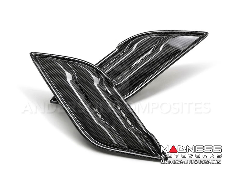 These mean looking Anderson Composites Gen 2 Raptor carbon fiber vents add a little bling to the sting of your Ecobeast powered Raptor. They use OE mounting hardware though mounting tabs may require modifications for correct fitment; minor adjustments may be necessary as part of the normal installation process