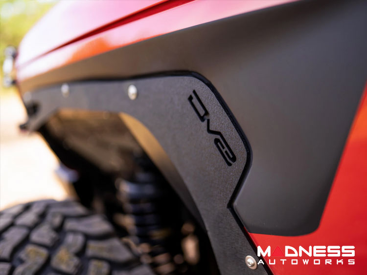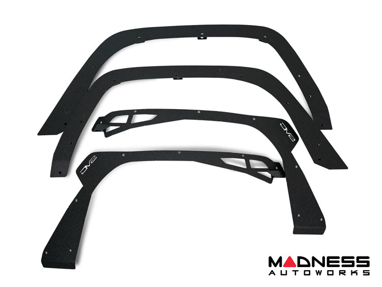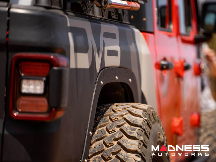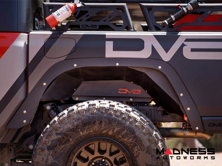 The DV8 Offroad Jeep JT Gladiator Fender Delete Kit was designed to maximize tire clearance, eliminate the factory fenders, and cover the exposed holes.