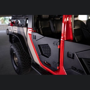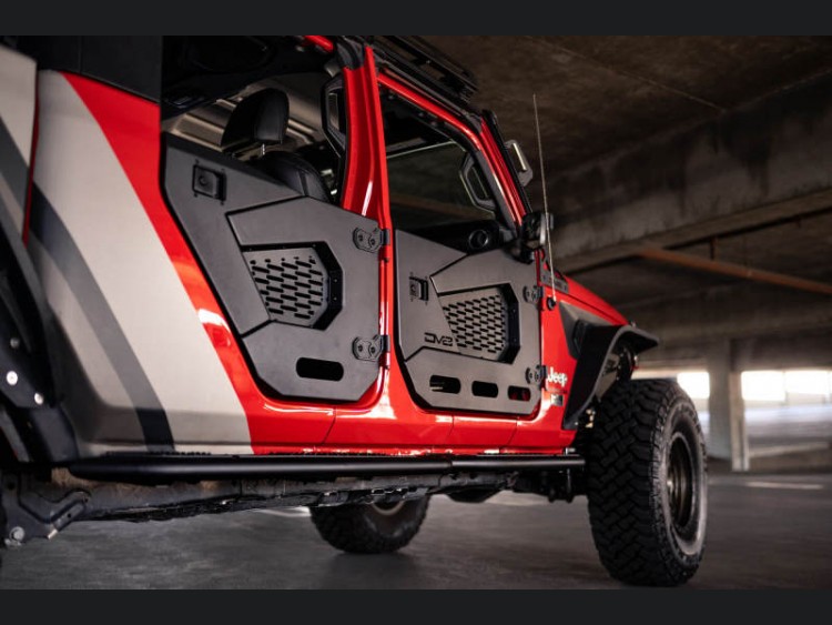Transform your Jeep Gladiator into the ultimate off-road machine with the DVE Rock Doors. Engineered by DV8 Offroad, these half doors are perfect for enthusiasts looking to experience an unobstructed connection with the outdoors, while still ensuring safety for all passengers. The innovative design opens up visibility to trails, allowing you to precisely navigate through tricky terrains, making obstacles and road adventures smoother than ever.