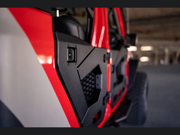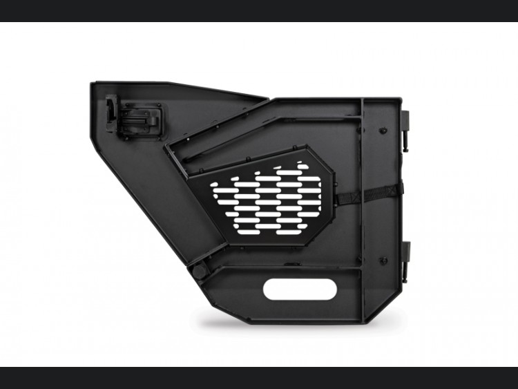 One of the standout features is the black mesh molle compatible panel located at the center of the door. This versatile addition allows for endless customization options with a variety of gear like pouches or a multi-tool attached securely to your vehicle. Not only do these doors deliver functional benefits, but they also embrace personal style preferences. The panels can be easily removed to optimize your view or sanded and painted to perfectly complement your Jeep's body color or blend with other accessories. Unleash your creativity while retaining maximum utility.