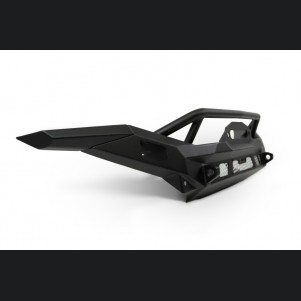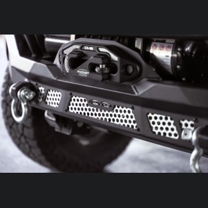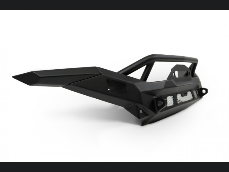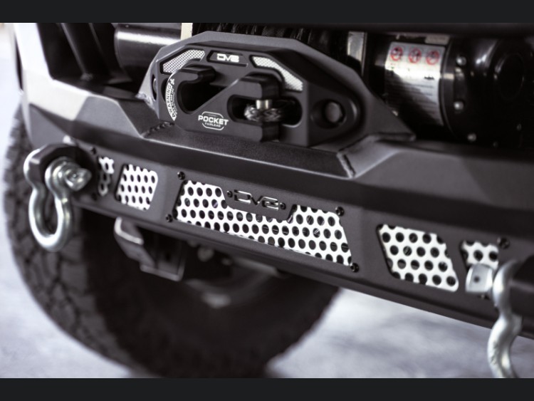Beyond recovery, the MTO Series bumper ensures you’re ready for after-dark excursions with its versatile lighting mounts. Behind paintable aluminum accent panels, the bumper accommodates several high-performance light bars such as the DV8 Elite 20”, Baja Designs S8 20”, or Rigid SR 20” LED light bars. Each wing also features a dedicated mount for a 3-inch light pod, ensuring comprehensive trail illumination. The bumper is finished in a durable micro-texture black powder coat, guaranteeing resilience against the harshest elements.