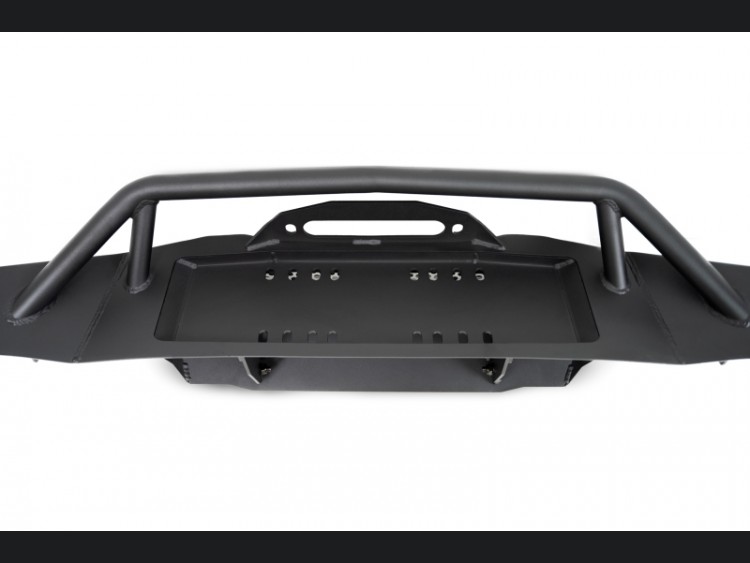 - Recessed winch tray behind a tubular bull bar