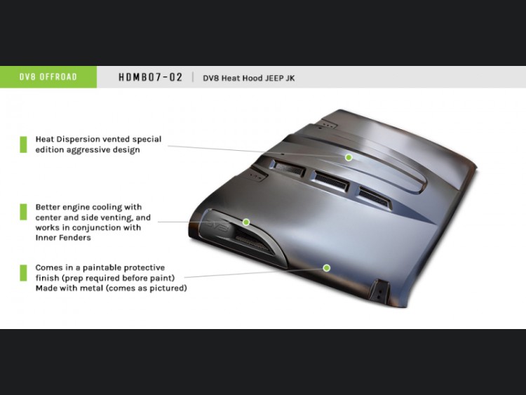 Jeep Wrangler JK Heat Dispersion Hood - DV8 Offroad - Primer Black - `07-`18