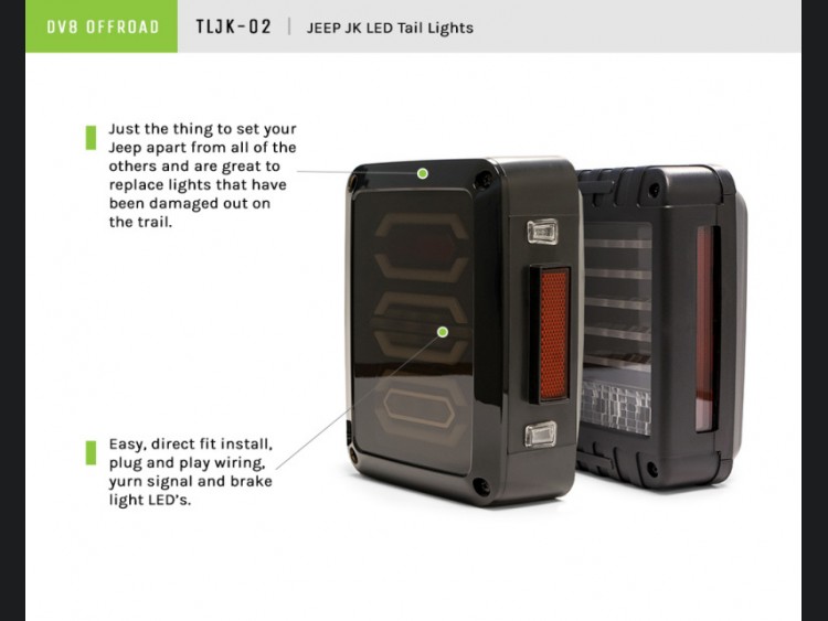 Enhance the look and functionality of your Jeep Wrangler with our premium DV8 Offroad LED Tail Lights, specifically designed for the Jeep Wrangler JK. These LED tail lights not only provide superior illumination but also add a unique, modern touch to your vehicle, ensuring it stands out on any trail or road. Whether you're replacing old, damaged lights or simply looking to upgrade, these tail lights are an excellent choice. With their robust design and easy installation process, they're a must-have for Jeep enthusiasts.