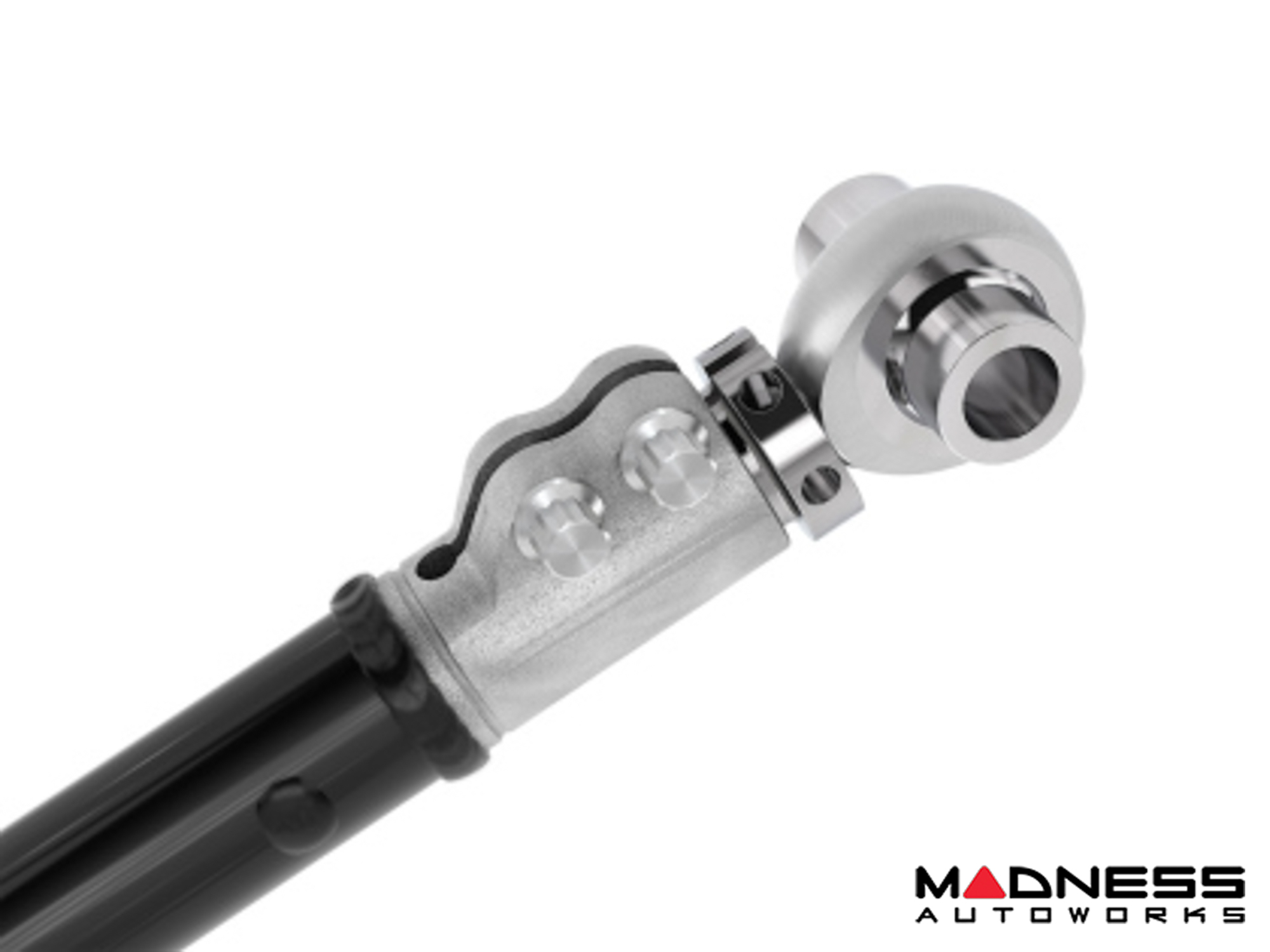 A massive FK Rod End at one end, along with a dual-durometer, high angle greaseless bushing at the other end yields the best combination of maximum travel and articulation while isolating and damping road noise and vibrations.