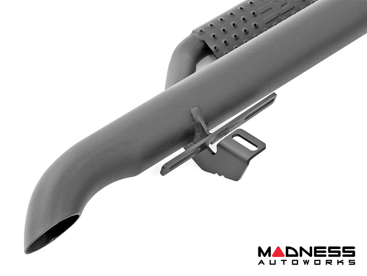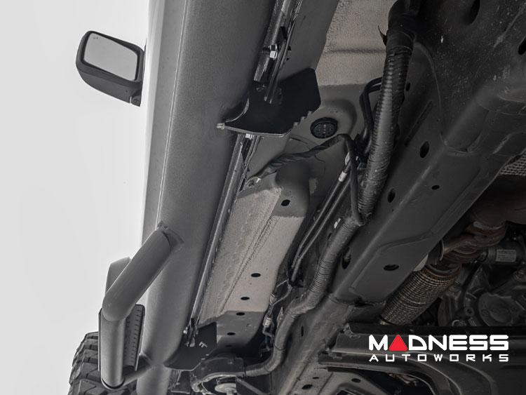 Rough Country's 3-Inch Nerf Steps extend from one wheel well opening to the next, offering a clean install that lends to the look of your lifted truck. These steps can be installed on any vehicle, with or without a body lift. Our innovative design actually hides any exposed frame you see under the truck, offering extra protection for your rocker panels. Rough Country Nerf Steps are Made out of ultra-durable .084 Wall corrosion-resistant tubing with a Zinc Base Coat and Black Finish for a sharp look that's ready to withstand the elements.