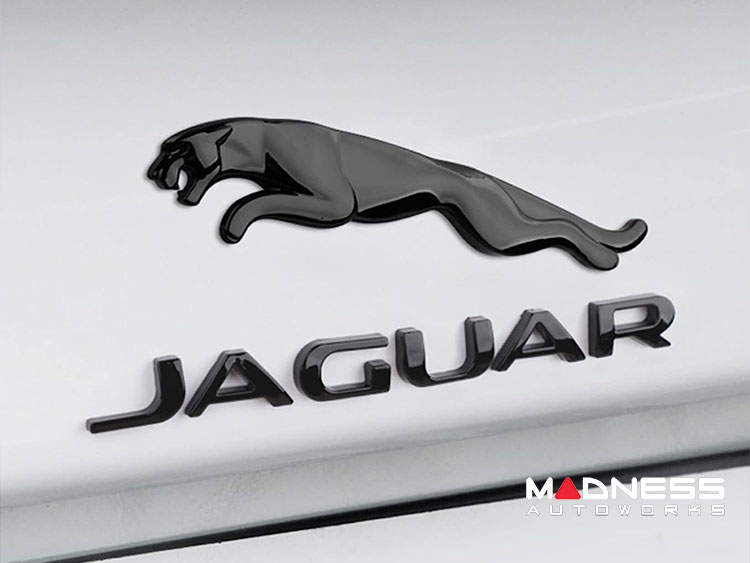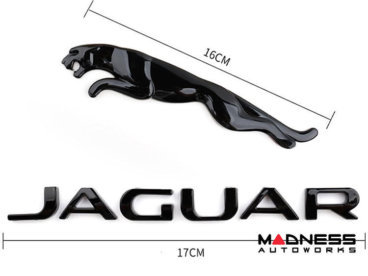 Jaguar Custom Emblem Set - Leaping Jaguar + Jaguar Lettering - Gloss Black Finish