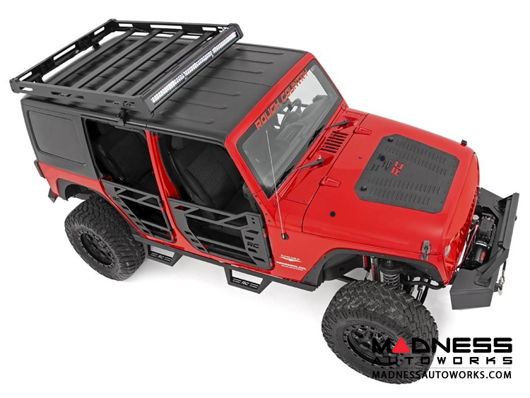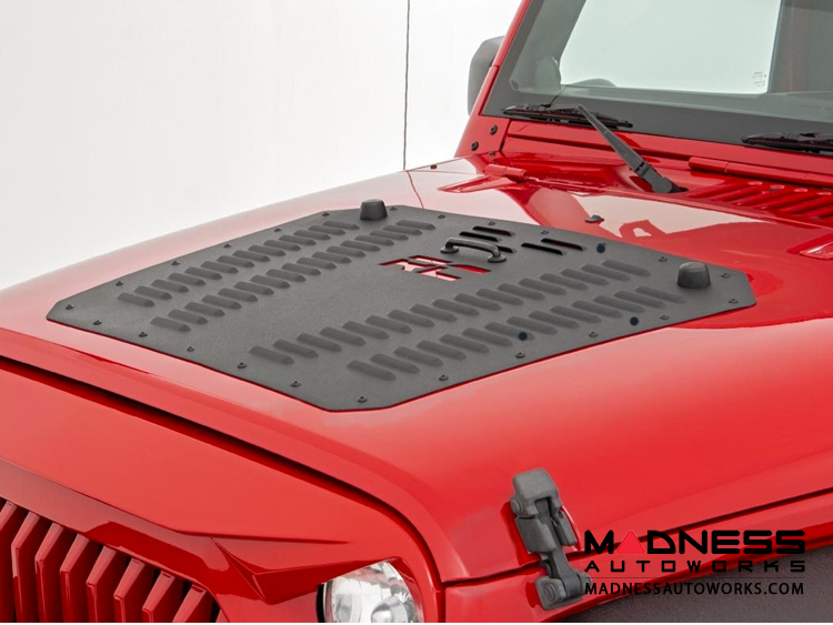 Rough Country’s JK Hood Vent includes black rivets spanning the outside edges for a rugged and interesting look. Each unit features a durable, black powder coat to resist the elements and laser-cut “RC” logo. Improve the look and functionality of your Jeep today!