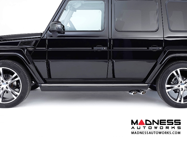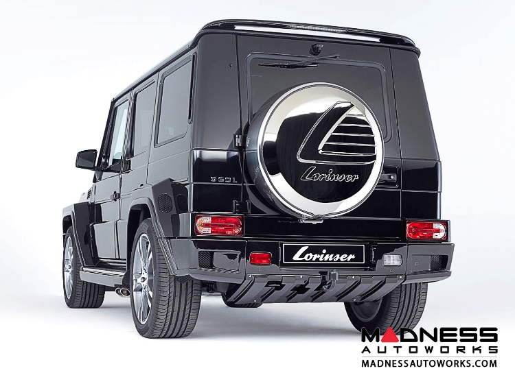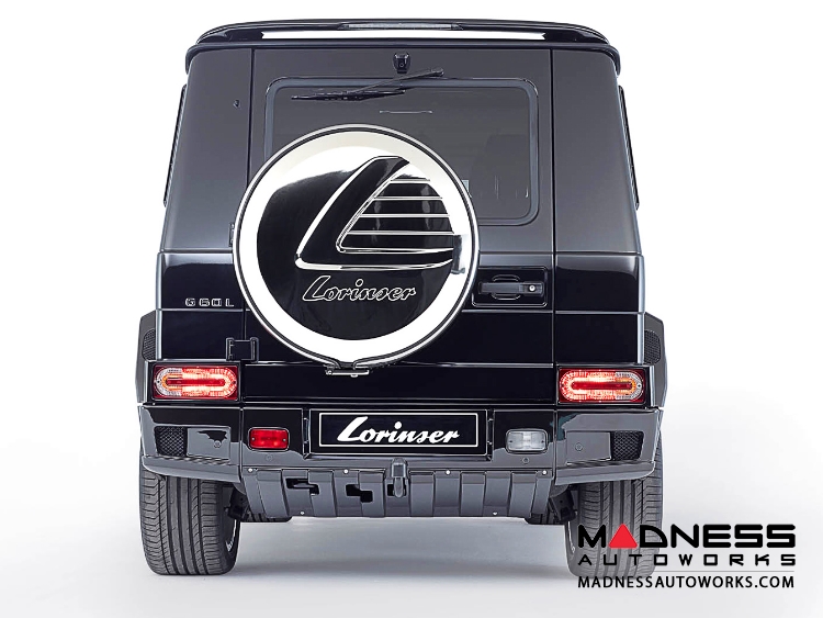 Whether it‘s in urban traffic or on a rural road, the raised seating position in a G-Class helps you to take in all that‘s going on around you. Lorinser makes the G-Class into a real eye-catcher. At the front, an elegant spoiler bumper with additional headlights makes a clear statement. This is complemented at the rear by a perfectly-fitted apron, a sporty roof spoiler and a spare wheel cover with the Lorinser emblem. Side Exit Exhaust makes an aggressive statement that defines what the G-Class is all about.