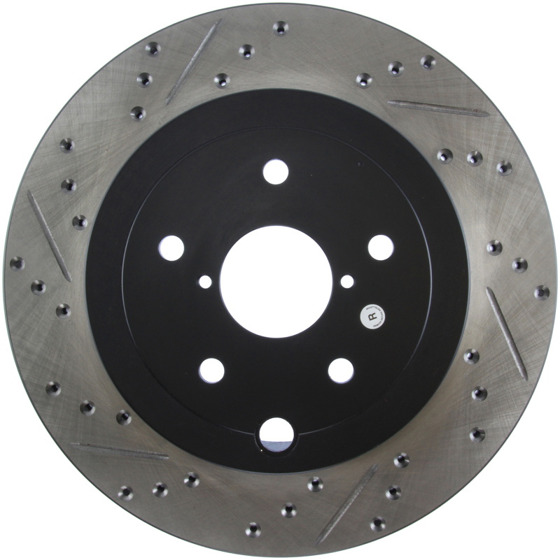 StopTech Drilled and Slotted Sport Rotors are 1-piece direct replacement brake discs for factory brake systems and stock calipers that look great behind your wheels – and offer significantly improved braking performance. The unique cross-drilling and slotting aids with heat and brake dust dispersal; prevents glazing of the pads; adds bite and improves wet and dry braking performance. Built to last; the black e-coating provides protection from corrosion and the high carbon metallurgy (in most applications) offers quieter operation; better crack resistance and increased performance.. StopTech Drilled and Slotted Sport Rotors are 1-piece direct replacement brake discs for factory brake systems and stock calipers that look great behind your wheels - and offer significantly improved braking performance. The unique cross-drilling and slotting aids with heat and brake dust dispersal; prevents glazing of the pads; adds bite and improves wet and dry braking performance. Built to last; the painted hat provides protection from corrosion and the high carbon metallurgy (in most applications) offers quieter operation; better crack resistance and increased performance.. Premium e-coated rotor with advanced metallurgy that greatly reduces pad squeal. Especially effective with higher friction; European style brake pad compounds. Drilled & Slotted for increased bite; improved looks and better performance. Premium e-coated rotor with advanced metallurgy that greatly reduces pad squeal. Especially effective with higher friction; European style brake pad compounds. Drilled/Slotted for increased bite; improved looks and better performance. Premium rotor with advanced metallurgy that greatly reduces pad squeal. Especially effective with higher friction; European style brake pad compounds. Drilled & Slotted for increased bite; improved looks and better performance. Premium e-coated rotor with advanced metallurgy that greatly reduces pad squeal; Especially effective with higher friction; European style brake pad compounds; Added Molybdenum and Chromium to resist rotor cracking. Sport Drilled Rotor; StopTech; StopTech Rotor; Stop Tech Rotor; Stop-Tech Sport Rotor; StopTech Sport Rotor; StopTech Brake Rotor; Stoptech Drilled/Slotted Rotor. StopTech 08+ Subaru STI (Will Not Fit 05-07) Slotted & Drilled Sport Brake Rotor. StopTech Sport Drilled & Slotted Brake Rotor; Rear Right. 2008 - 2014 Subaru Impreza, 2013 - 2017 Subaru WRX STI. StopTech Sport Drilled/Slotted Brake Rotor; Rear Right. Black E-Coated Non-Friction - Corrosion Protection. Double Disk Ground For Consistent Friction Surface. Superior Resistance To Cracks From Thermal Stress. Sport Drilled & Slotted Brake Rotor; Rear Right. Drilled/Slotted Helps Evacuate Gasses/Dust/Heat. Directional Curve Vane Designs On Selected Apps. Power Alloy Is Descendant Of Patented AeroRotor. Increased Initial bite and Wet Weather Response. Sport Drilled/Slotted Brake Rotor; Rear Right. StopTech Slotted & Drilled Sport Brake Rotor. StopTech Sport Drilled/Slotted Disc. Sport Drilled/Slotted Brake Rotor. Stoptech Drilled/Slotted Rotor. Direct OE Replacement. Disc Brake Rotor. Slot/Drill Rotor