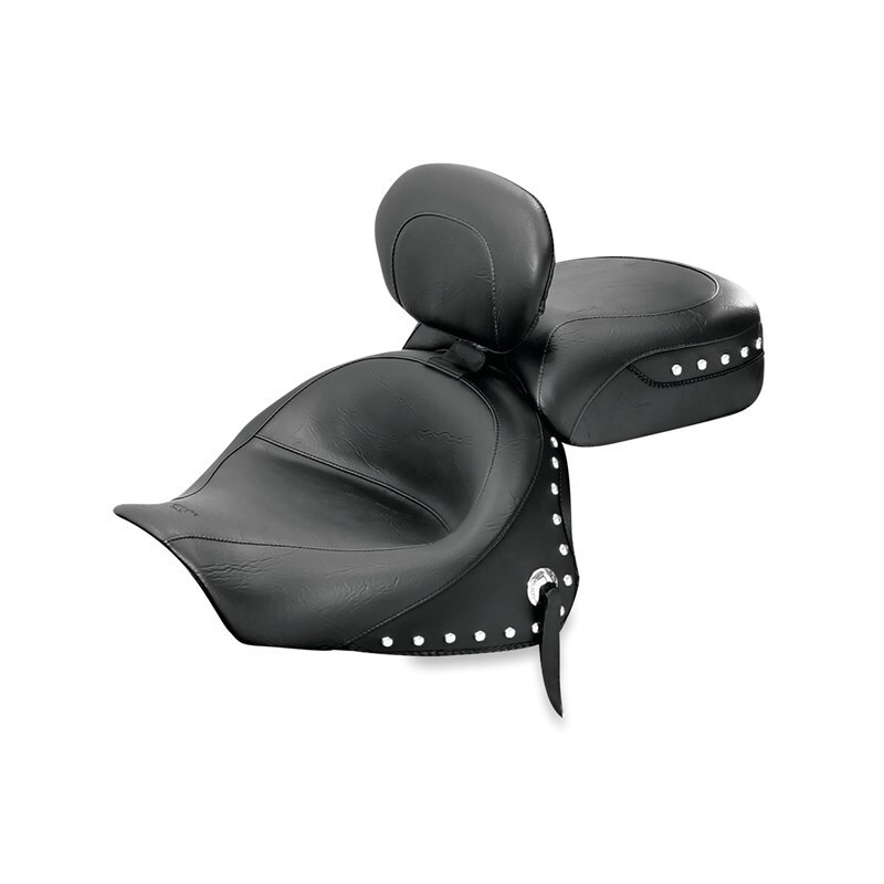 Kawasaki Vulcan 1600 Classic Two-Piece Motorcycle Seat - Mustang Motorcycle - w/Driver Backrest Studs - Black - `03-`08