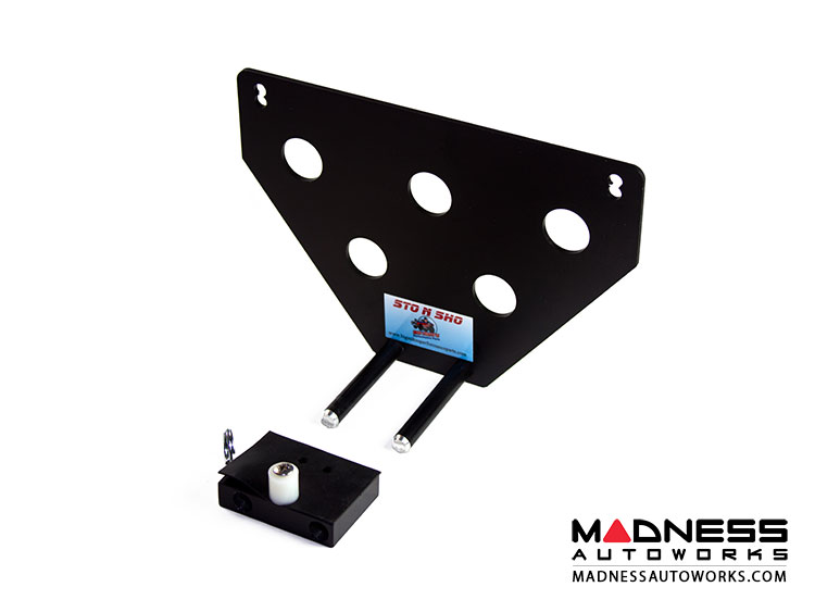 The STO N SHO is a two piece detachable front license plate mounting system consisting of a front license plate holder and a base mounting plate that allows for the easy removal of the front license plate when desired and the quick replacement of the front license plate when needed. When the front license plate holder is removed the remaining base plate is virtually undetectable. The STO N SHO allows you to comply with state law while maintaining the beauty of your BMW M2/ M3/ M4.