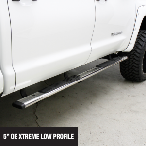 The OE Xtreme Low Profile Side Steps are available in an array of lengths, accommodating regular, extended, and crew cab applications for versatile customization. Backed by a Limited Lifetime warranty, these side steps affirm their promise of superior quality, longevity, and refined aesthetics. Your vehicle deserves components that echo its strength and reliability, and the OE Xtreme Side Steps are crafted with meticulous attention to detail to meet those standards.