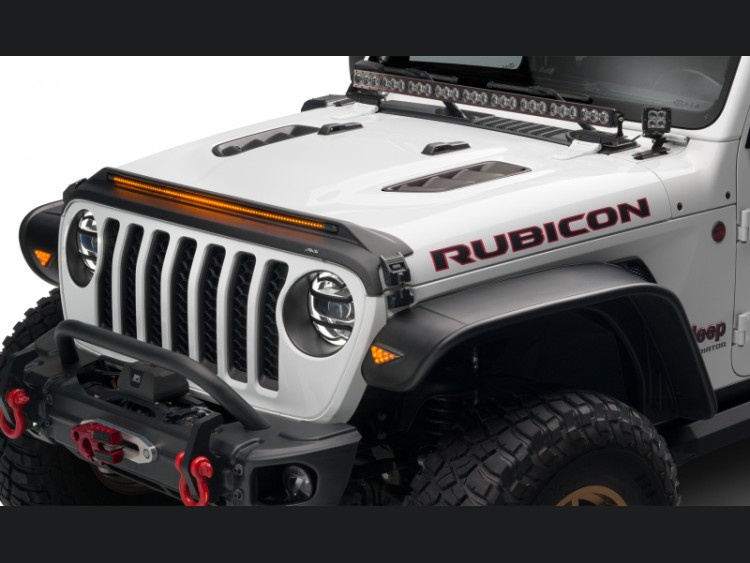 The AVS Aeroskin LightShield is more than just a hood protector; it's the first of its kind to integrate fully functional amber LED running lamps. Picture this: during the day, your Gladiator cuts through the air like a knife, the curved, aerodynamic design channeling away bugs, dirt, and debris to keep your hood as smooth and clean as a showroom floor. At night, the multiple light output sequences not only showcase your style but also enhance your safety, making you visible even in the darkest conditions.