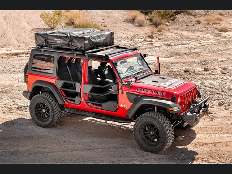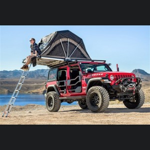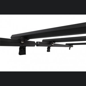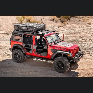 The roof rack kit is comprised of a 24-inch rack ideal for covering the front doors, and a 60-inch rack perfectly designed to span the rear doors and cargo area. Installation is a breeze, as the racks mount directly into the existing drip rails of your Jeep, giving you peace of mind with a strong, reliable fit. The adjustable cross-bars are designed for flexibility; simply move them forward or backward to secure a variety of light accessories, bikes, tents, and much more. Accessories, however, are sold separately.