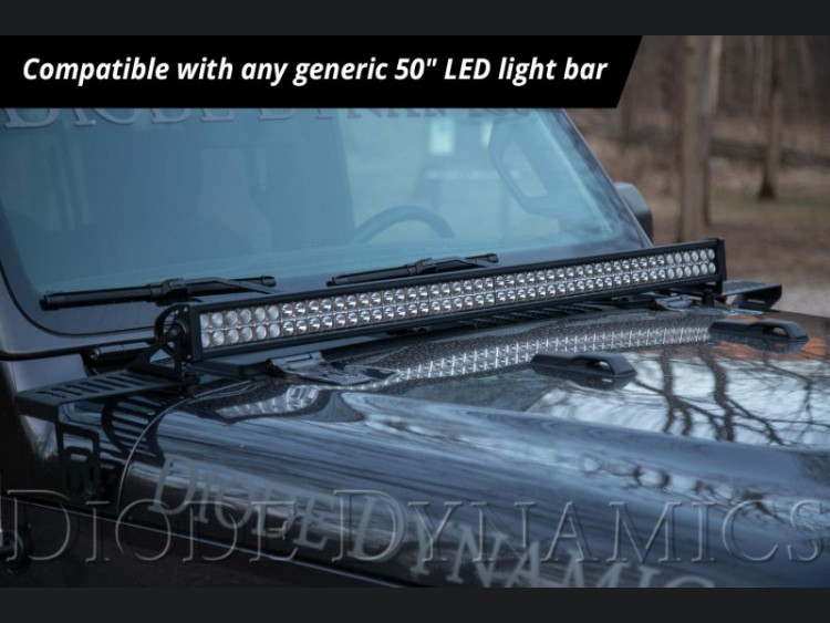 - Allows you to mount a 50" light bar across the hood.