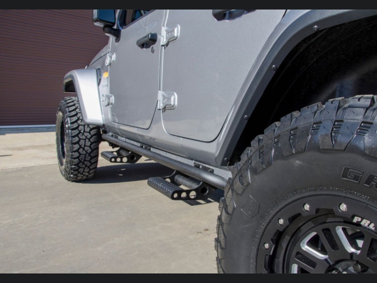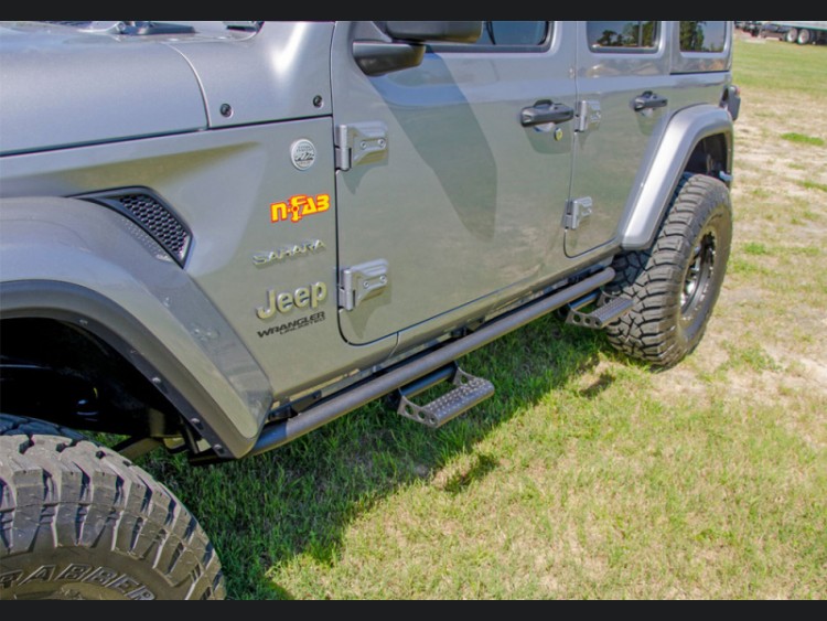 - Full-length step system with a single step mount per side designed specifically for 2018-2024 Jeep Wrangler JL 4-Door.