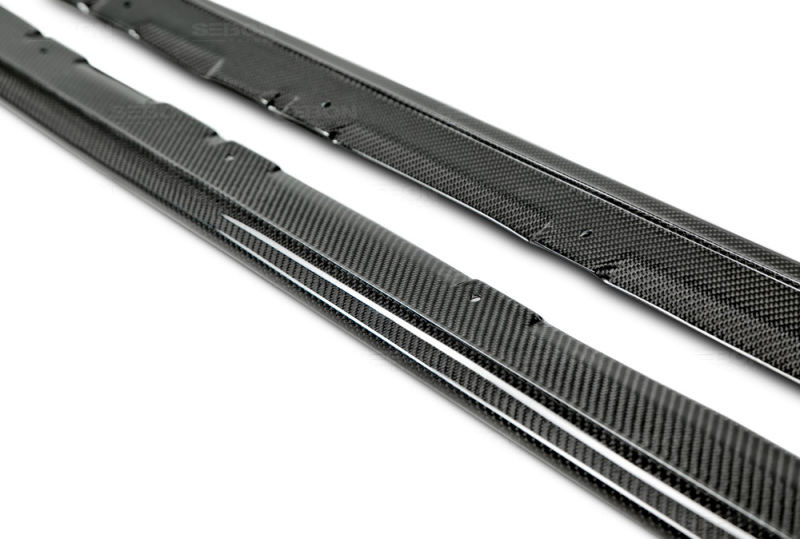 Seibon Carbon components are carefully hand-crafted using only the finest materials. Our production team offers superior craftsmanship with over 20 years of experience working with carbon fiber. Every component is constructed with a consistent weave pattern. Our production processes allows exceptional carbon/resin ratio, creating high product stiffness that also leads to extra strength. For a stunning finish, our products are coated with a glossy clear coat that does not chip or flake. We meticulously inspect all of our components and stand firmly behind our products so that you can enjoy peace of mind with every genuine Seibon Carbon product. Creating performance-oriented products that help shed unnecessary weight without sacrificing style is our specialty. Race after race, Seibon products have proven to be as strong as the driver's ambition to win, thus making Seibon Carbon the preferred brand among professional drivers.. All items are made to order and may require extra time to be manufactured.. Uses professional, high quality 3K 2X2 twill weave carbon fiber fabric.. Seibon 15+ Subaru WRX/STI MB Style Carbon Fiber Side Skirts (Pair). MB-style carbon fiber side skirts for 2015-2018 Subaru WRX/STi. Show-ready. No painting required.. Seibon Side Skirts (Pair). Durable and lightweight. SIDE SKIRTS (pair). Side Skirt