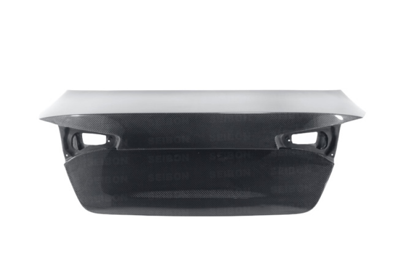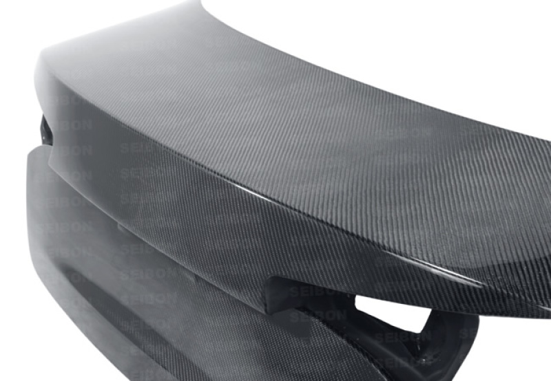Crafted by Seibon, a leading name in carbon fiber manufacturing, this component is carefully hand-crafted with a consistent weave pattern using top-quality 3K 2X2 twill weave carbon fiber fabric. Seibon's production process ensures an exceptional carbon/resin ratio, which enhances the trunk lid's stiffness and strength without compromising its lightweight characteristics. The product is coated with a clear, glossy finish that does not chip or flake, making it both race-ready and show-ready straight out of the box. This OEM-style lid is designed to reuse your vehicle's original installation hardware, ensuring a straightforward installation process without the need for painting or additional modifications.