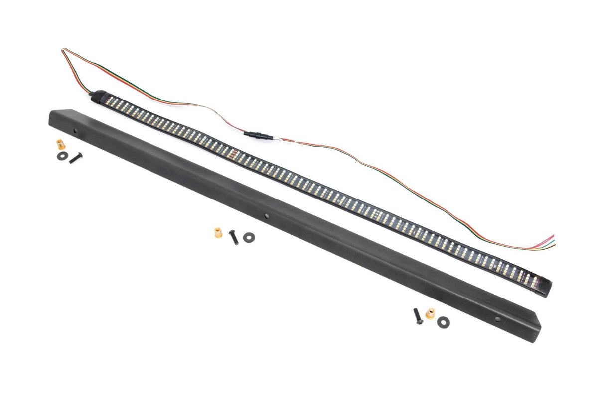 The Rough Country Quad-Row Multifunction LED Tailgate Light Strip is crafted to upgrade your Can-Am's functionality with impressive features. This tailgate light strip is engineered with 288 ultra-bright red and white LEDs, ensuring superior illumination whether you’re navigating trails at night or working during early dawn. The strip seamlessly integrates into your Can-Am, providing bright and dim red light options, powerful white reverse lights, and strategically placed red turn signals for enhanced visibility and safety. The product includes a durable, powder-coated steel bracket for robust mounting under the tailgate.