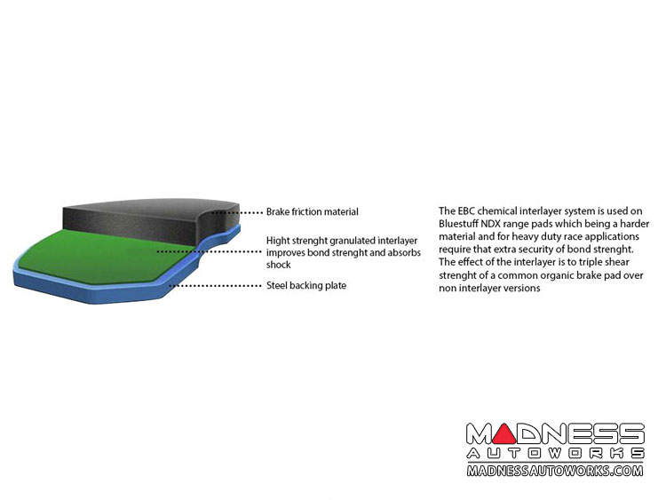 The biggest advantage of EBC Bluestuff NDX is their bite from cold and progressive brake feel and the ability to bring a car to a complete stop. This has led to the ECE R90 brake safety regulation approval of R90 which is now completed and certificates are being obtained (during July 2011).
