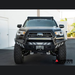 The DV8 Offroad Toyota Tacoma roof rack mounts to existing holes in the roof of the Tacoma and accommodates a 45” light (Brackets for 40” available).