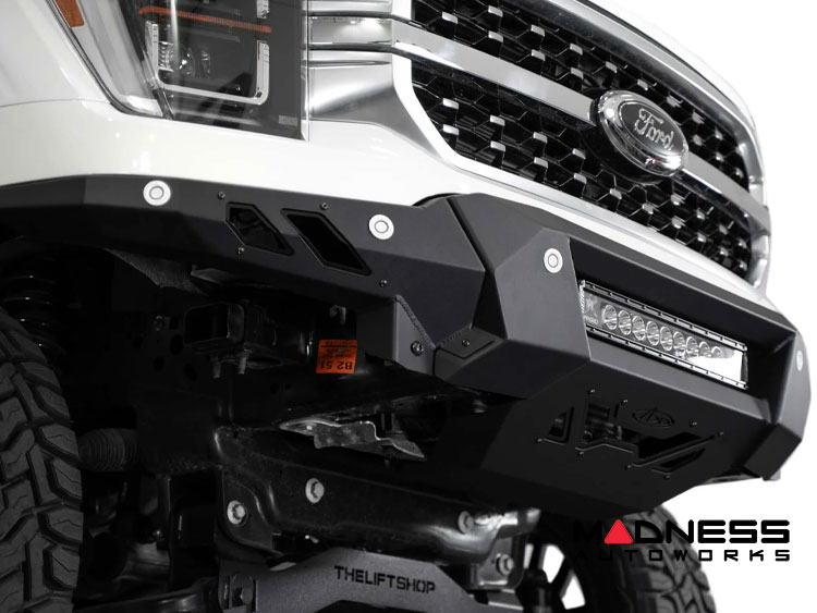 The Black Label Ford F-150 Front Bumper is the perfect addition to your vehicle, enhancing its factory style while ensuring a perfect fitment and easy installation. Designed with both trail and worksite use in mind, this bumper features a center mount for a 20-inch LED light bar, providing you with additional lighting whenever you need it.