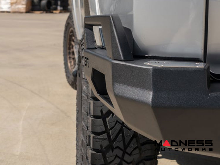 - Modular bumper with the option to add a single or dual tire/accessory swing