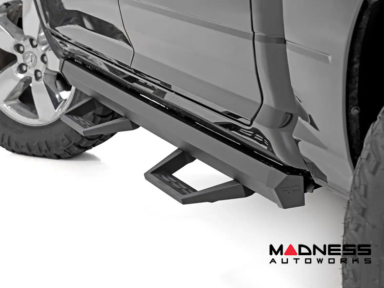 Installing the Dodge Ram Side Steps by Rough Country is straightforward and hassle-free. Each set comes with comprehensive instructions and all the necessary mounting hardware, making the process quick and efficient. You'll be able to enjoy the benefits of these running boards in no time, including improved access to the cab and a boost in your vehicle's visual appeal.