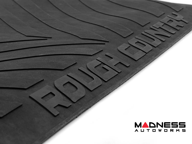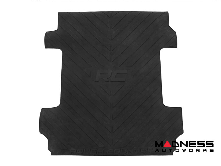Constructed from a durable Nyracord rubber compound, this bed mat is engineered to withstand extreme temperatures without cracking or fading. The contoured design ensures a custom-molded fit, tailored to complement the bed of your GMC Sierra. Furthermore, the mat's stylish design features the iconic "RC" and "Rough Country" logos, along with angled lines that not only add to the visual appeal but also contribute to the protection it offers.