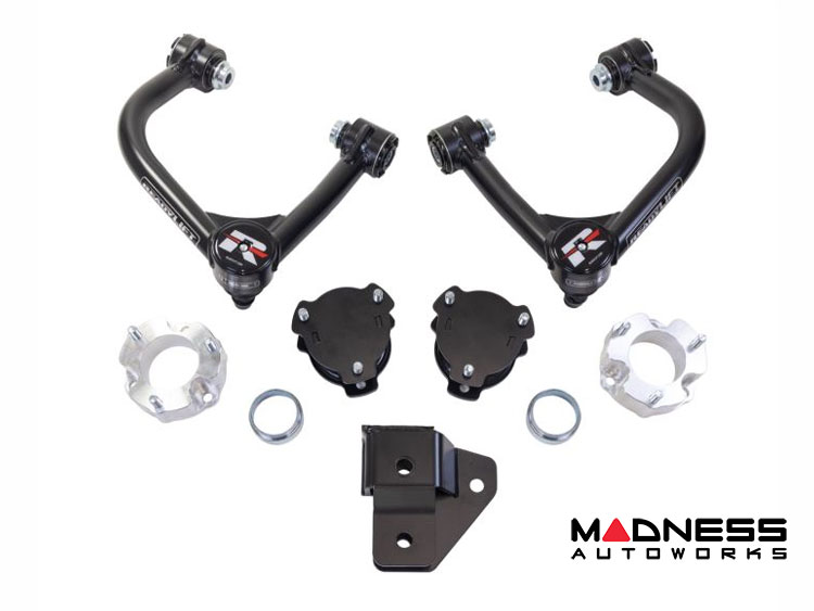 Constructed to perfection, this 3" SST kit includes 6061-T6 Billet Aluminum Front Spacers and 4130 Alloy Steel Preload Spacers, each precision CNC-machined to ensure durability and perfect fitment. The lift kit corrects the suspension geometry with a robust .250" Steel Heavy-Duty Rear Track Bar Bracket, making space for larger tires while maintaining a smooth ride quality.
