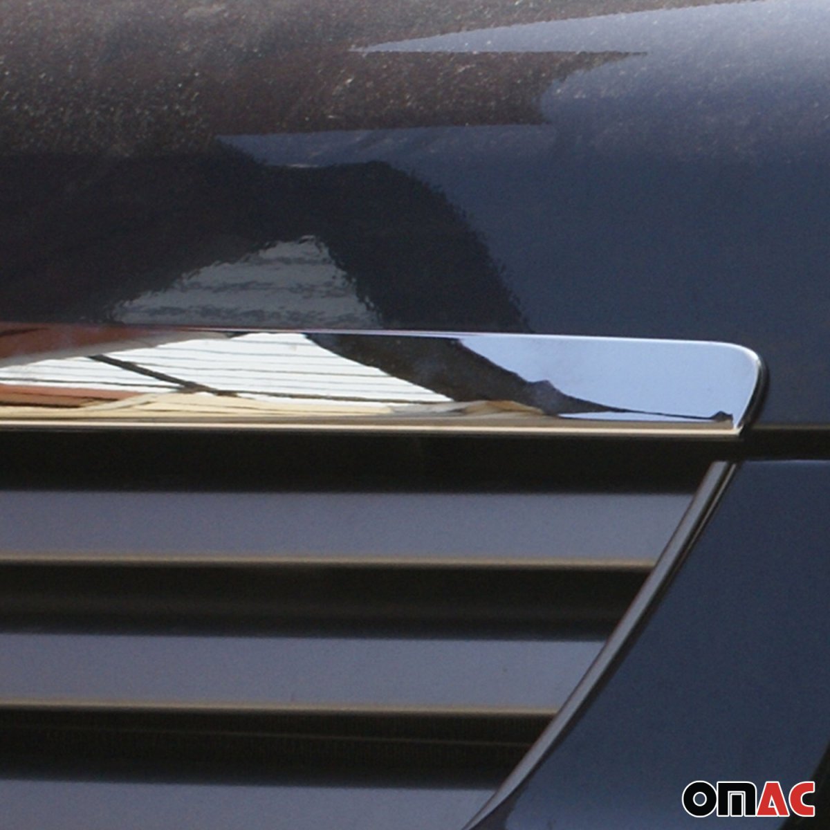 Introducing the Ford Transit Connect Bonnet Streamer - Omac USA, designed specifically for models from 2009 to 2014. Crafted from high-quality stainless steel with a glossy silver finish, this streamer is the perfect accessory for enhancing the front profile of your vehicle.