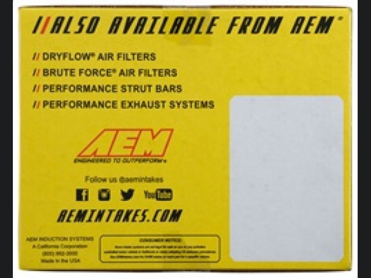 • Oversized AEM Dryflow air filter for optimal airflow and filtration.