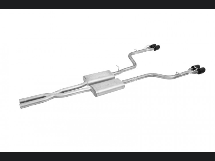 Introducing the Dodge Challenger R/T Performance Exhaust by Gibson - Cat-Back Dual Exhaust - Black Elite (Ceramic) - Black, designed specifically for your 2009-2015 muscle car. This high-performance exhaust system adds an aggressive sound and impressive power gains to your ride, enhancing your driving experience to the fullest.