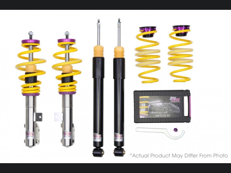 This coilover kit is more than just a performance upgrade; it's about fine-tuning your driving experience. Featuring KW's proprietary Twin Valve Rebound - Adjustable technology, this system allows you to customize the rebound damping characteristics through 16 distinct clicks. This means you can adjust your ride for more comfort or precision handling, making it adaptable for street or track use. The V2 coilover is engineered with vehicle-specific damper settings that have been tested rigorously for optimized performance. You can expect a dynamic driving experience that remains direct and connected no matter the conditions.