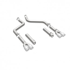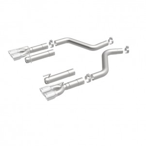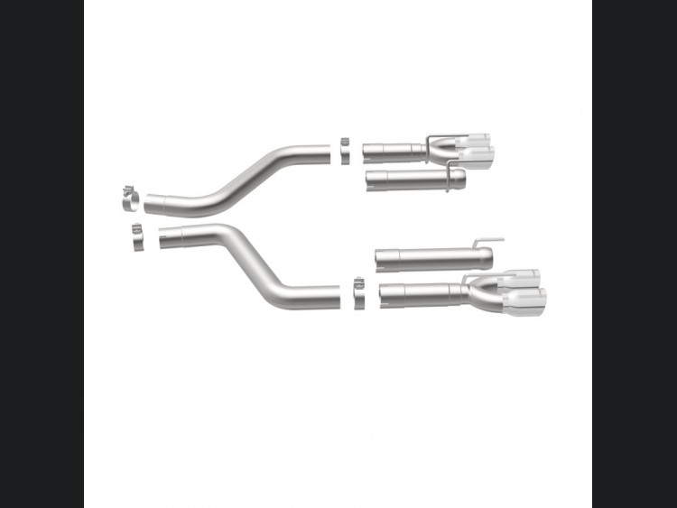 This Performance Exhaust system for the 2015-2023 Dodge Challenger features MagnaFlow's distinctive race-ready, lightweight, dyno-proven design. It's engineered to deliver aggressive exterior sound levels and an intense interior soundtrack while replacing the exhaust components from near the rear axle back. Enhanced with fast-flowing mandrel-bent piping and a Quad Split Rear exit, it culminates in polished, 3.5-inch welded-on double wall angle cut folded edge tips. Extensive 3D scanning and CNC precision robotic manufacturing techniques ensure a direct-fit design for ease of installation. The MagnaFlow Race Series Axle-Back system is constructed from durable, corrosion-resistant stainless steel, backed by a limited lifetime warranty.