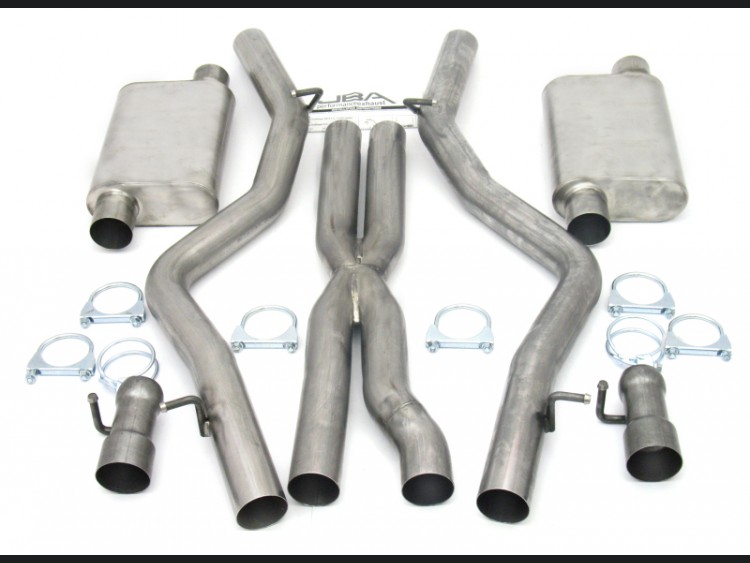 The Dodge Challenger SRT8 Performance Exhaust - Dual Rear Exit by JBA is the ultimate upgrade for your 2008-2014 Challenger SRT8. Crafted to enhance both power and sound, this cat-back exhaust system is made from 409 stainless steel, offering a durable and efficient solution for performance enthusiasts.