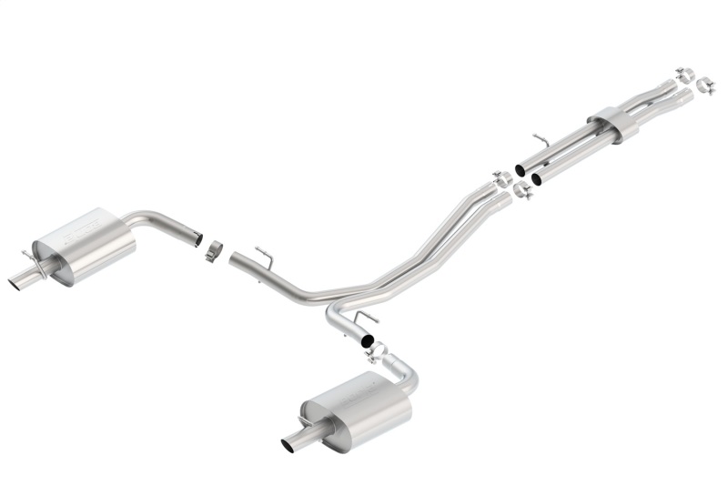 The Ford Explorer Performance Exhaust - Rear - Borla - S-Type Cat Back Dual Split, designed for the 2016-2017 Ford Explorer Sport 3.5L V6 EcoBoost, brings an unmistakable sound and performance upgrade to your vehicle. Built from premium T-304 stainless steel, this exhaust system delivers the powerful Borla sound and enhanced engine efficiency that automotive enthusiasts covet.