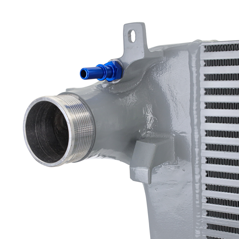 This Mishimoto intercooler promises performance that matches its bold style, offering a 130% increase in core volume and a 168% increase in fin surface area over the stock unit. These design enhancements translate to better airflow, superior cooling, and increased horsepower – a vital upgrade for enthusiasts pushing their turbos to the limit. In rigorous dyno testing, this intercooler demonstrated an impressive power increase, adding up to 65 HP and 12 lb.-ft of torque with a stage one tune. The advanced design maintains outlet air temperatures within 10°F of ambient conditions, even when intake air temps reach over 300°F, vastly outperforming the stock intercooler's performance.