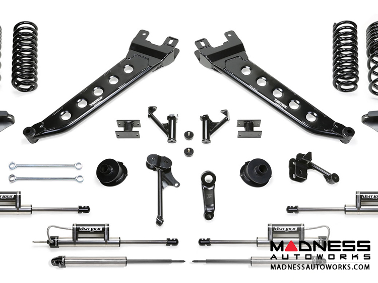 Dodge Ram 2500 7" Radius Arm System w/ Dual Dirt Logic Resi and Non Resi 2.25 Shocks by Fabtech (2014 - 2017) 4WD
