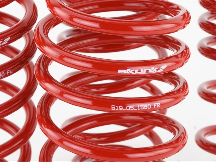 Skunk2’s lowering springs are crafted from high-grade SAE 9254V spring steel, ensuring durability and longevity. Through advanced CNC-wound processes, each spring set delivers precision and robustness under various driving conditions. To further enhance their resilience, these springs undergo shot-peen stress relief and are treated with a corrosion-resistant powdercoat and phosphate treatment. This meticulous manufacturing process results in a suspension upgrade that promises both a lowered center of gravity and a race-car-like handling feel, without compromising on ride comfort.