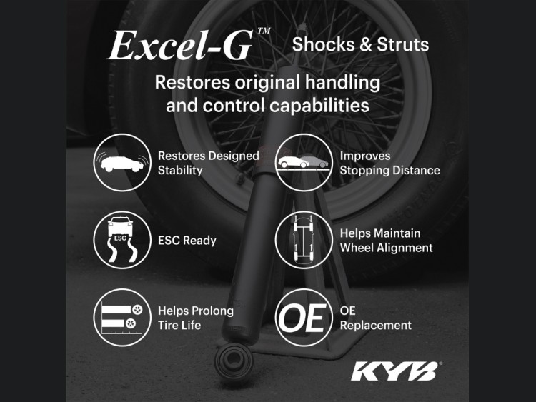The KYB Excel-G Shocks and Struts provide exceptional ride comfort and restore stability, stopping power, and lane change responsiveness. As a leading supplier in the automotive industry, KYB has crafted these components on the same OE assembly lines using high-quality materials. This ensures a reliable product that focuses on maintaining your vehicle's original design standards without any deviations. The Excel-G is a nitrogen gas-charged, twin-tube design, offering the durability and performance demanded by both professional technicians and everyday drivers.